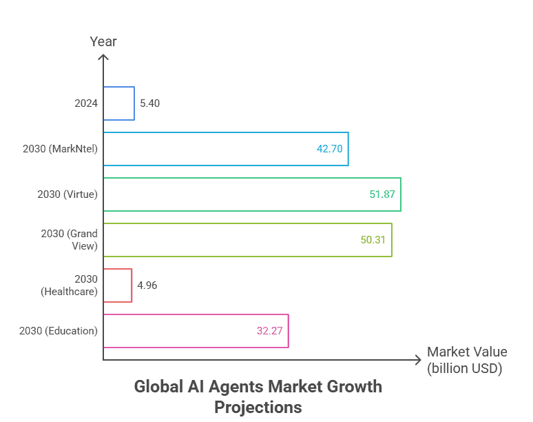 - Education AI agents: $5.88B → $32.27B (31.2% CAGR)