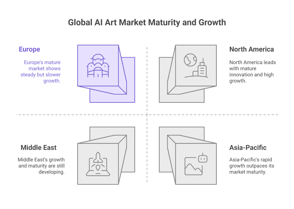 The AI art market shows distinct geographic patterns that reveal how different regions approach creative technology adoption.