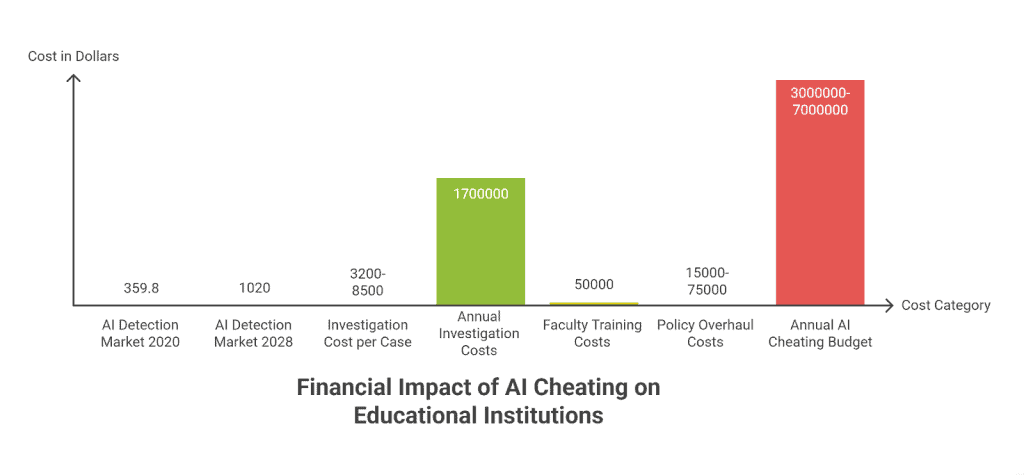 The financial burden starts with detection. Remember that AI detection tool market we mentioned? It’s exploding from $359.8 million in 2020 to a projected $1.02 billion by 2028. That’s not just growth; it’s institutions scrambling to keep up with increasingly sophisticated cheating methods.