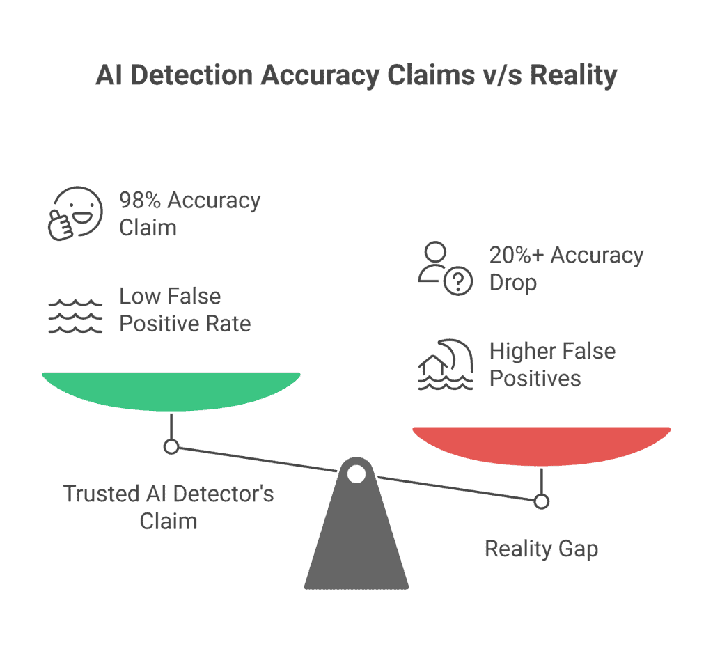 That 98% accuracy claim from Turnitin looks impressive on paper. But real academic settings tell a different story. When students paraphrase AI-generated content or use simple rewording techniques, these tools struggle to keep up. The 20+ percentage point accuracy drop isn’t just a minor hiccup; it represents thousands of papers slipping through detection.