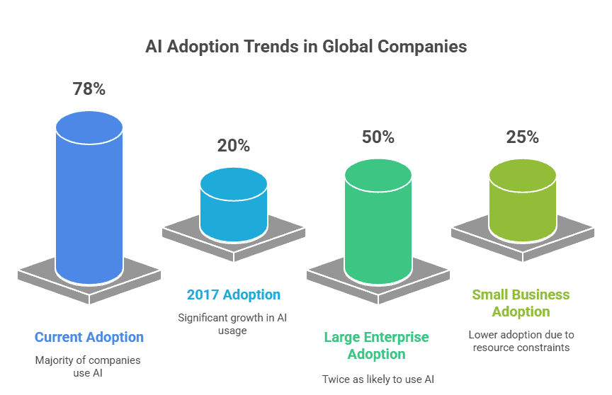 Right now, 78% of global companies use AI in their business operations. That’s a massive jump from just a few years ago.
