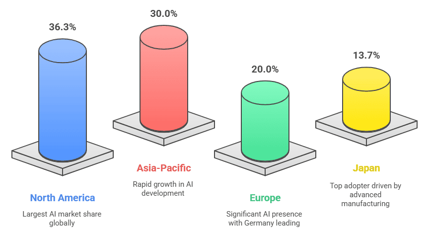 Europe maintains a significant presence too, with Germany’s AI market valued at over $25 billion. Japan also ranks among the top adopters, driven by its advanced manufacturing sector and technological innovation.