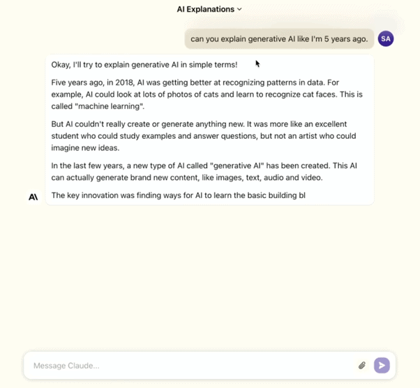 It works just like ChatGPT – in a conversational mode, Claude analyses user input and produces a contextually relevant response. It’s designed to be flexible enough to generate text responses with human-like intuition, leading to more engaging conversations and interactions.