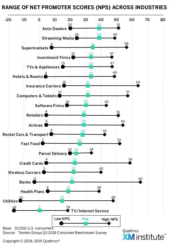 For instance, if you are a cable TV provider. Yous NPS is 15. From a range of -100 to +100, the number 15 might seem too low. You might end up believing that your customers are dissatisfied and you need to make a lot of changes to your work. It is only when you use an industry-wise NPS guide you can understand that a score of 15 for a cable TV provider is a high NPS score.