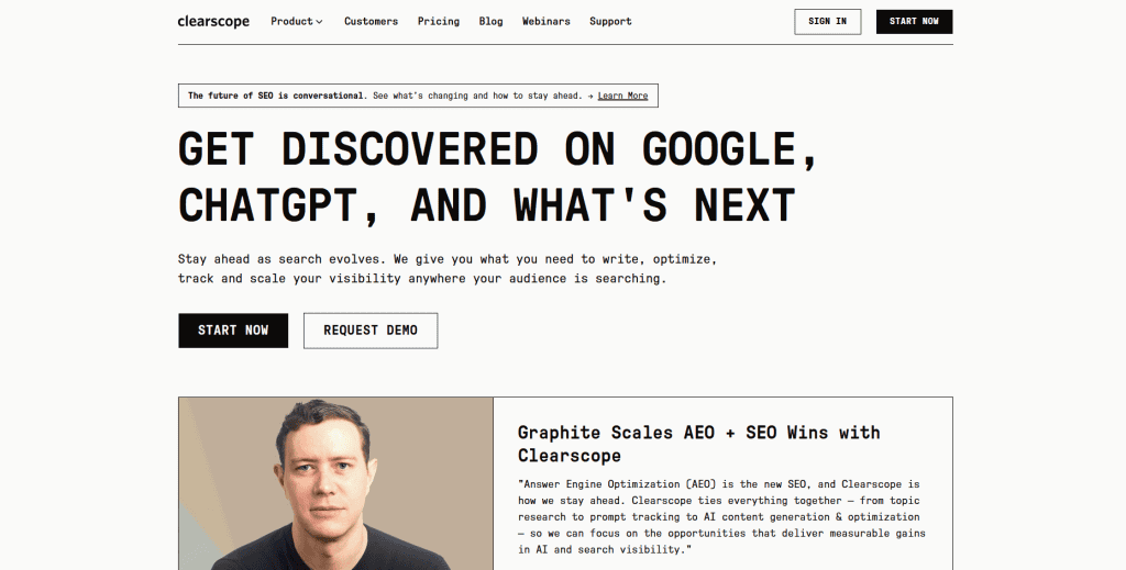 - For Data-Driven Content Brief Generation: Clearscope, “An AI-assisted platform generating detailed content briefs from keyword analysis and SERP data, with user intent analysis and content gap identification for strategic planning.”