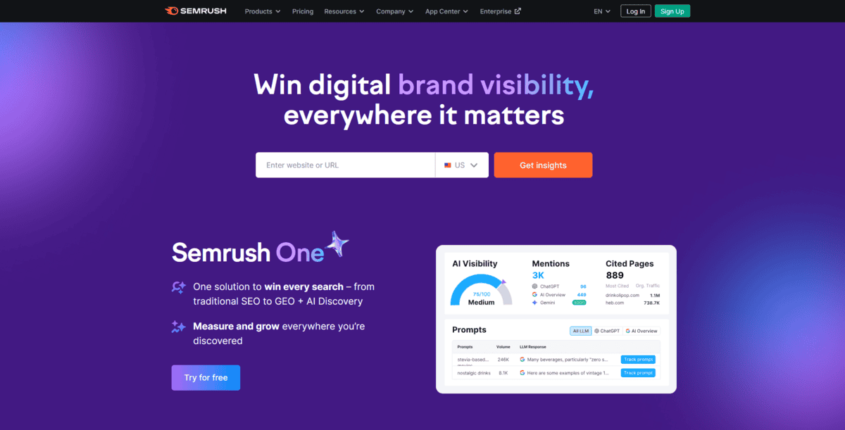 If you’re trying to write content that actually ranks on Google, Semrush gives you the data you need to make smart decisions. It knows exactly what people are searching for and what your competitors are doing.