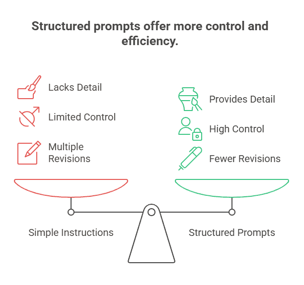 Think of it this way. If someone asked you “food?”, you’d be confused. But if they said “Can you recommend a good Italian restaurant near downtown that’s open past 9 PM?”, now you know exactly what they need. That’s the difference between a vague input and a structured prompt.