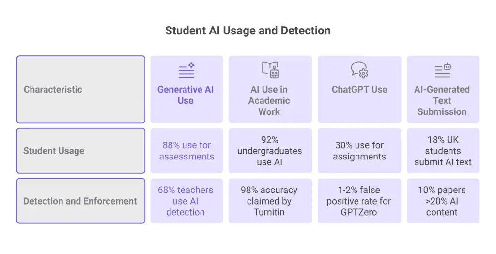 - 18% of UK undergraduate students admit to submitting AI-generated text in their assignments