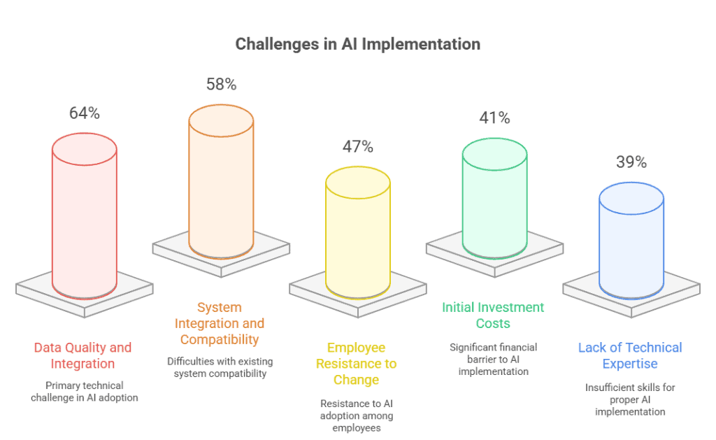 According to industry research, implementation obstacles span both technical and organisational dimensions: