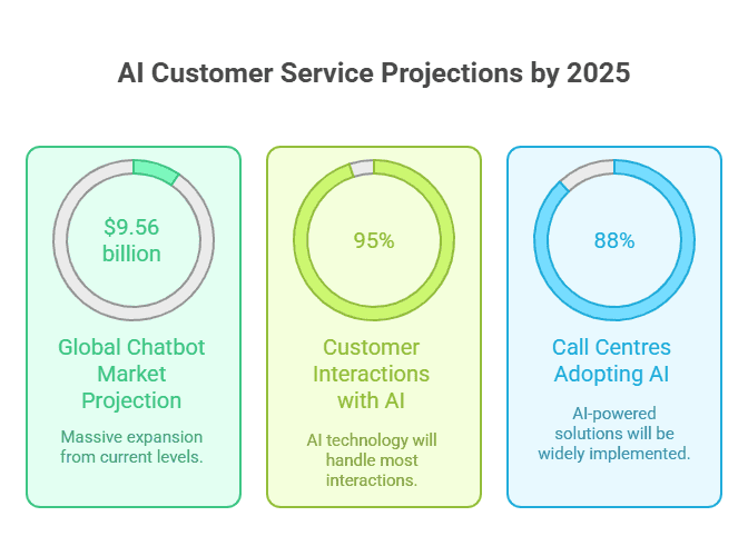 The trajectory for AI customer service shows explosive growth ahead: