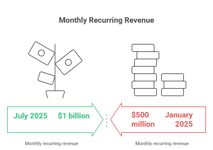 - Monthly revenue grew from $500 million in January 2025 to $1 billion in July 2025