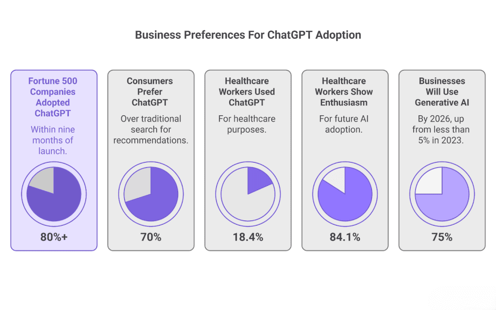 - Over 80% of Fortune 500 companies adopted ChatGPT within nine months of launch