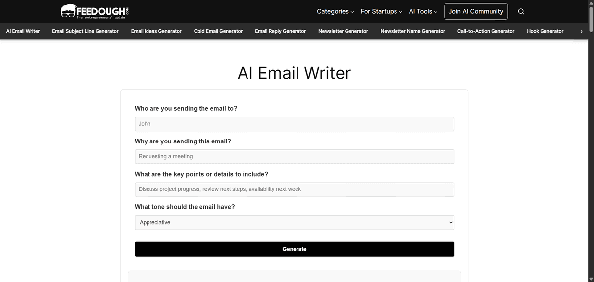 - Best Free AI Email Writer: Feedough’s Email Writer, “A completely free, no-sign-up AI tool that guides you through creating professional emails using customisable templates for various business and personal situations.”