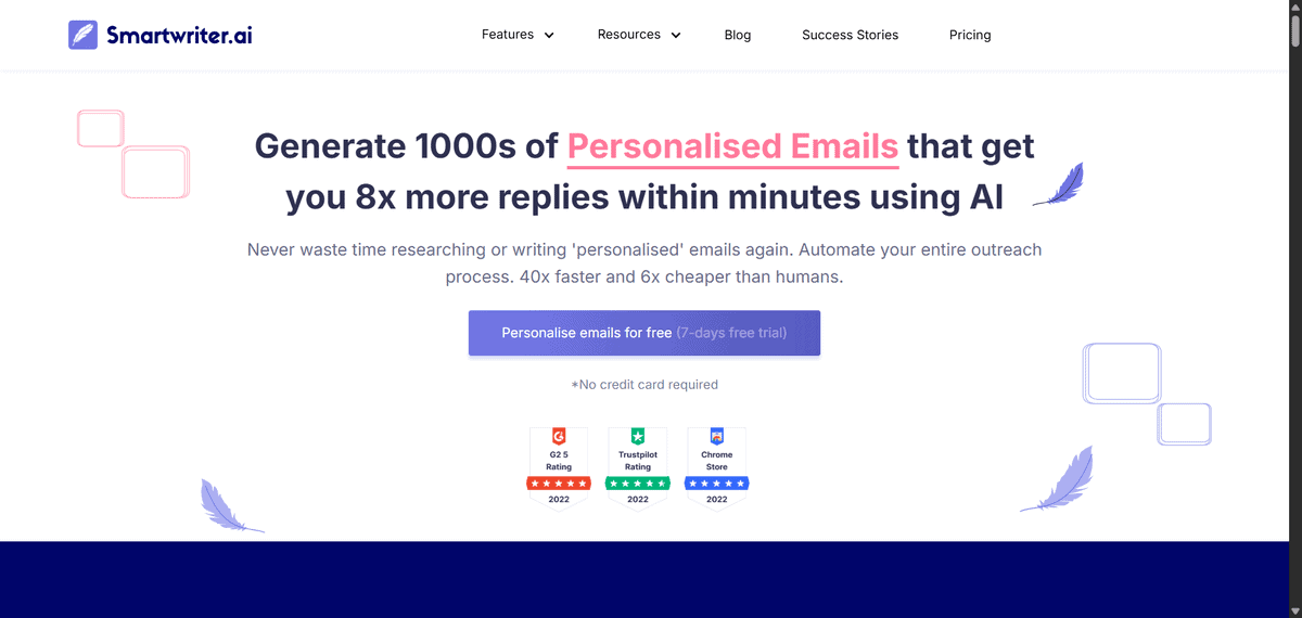 SmartWriter is an AI-powered tool that automates the research and writing process, letting you create personalised cold emails about 40 times faster than doing it manually.