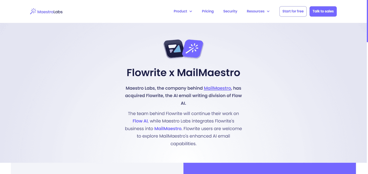Flowrite turns simple instructions into complete emails in seconds. Originally an independent tool, Flowrite was acquired by Maestro Labs in 2024 and integrated into their MailMaestro platform, bringing its quick-generation technology to a broader email assistant.