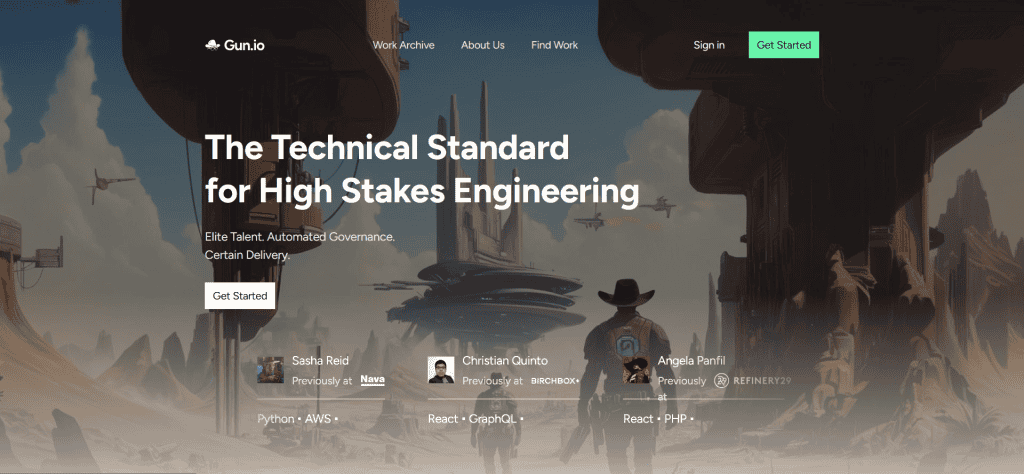 - Best for complex engineering work: Gun.io– Startups and enterprises tackling technically challenging, high-impact builds.