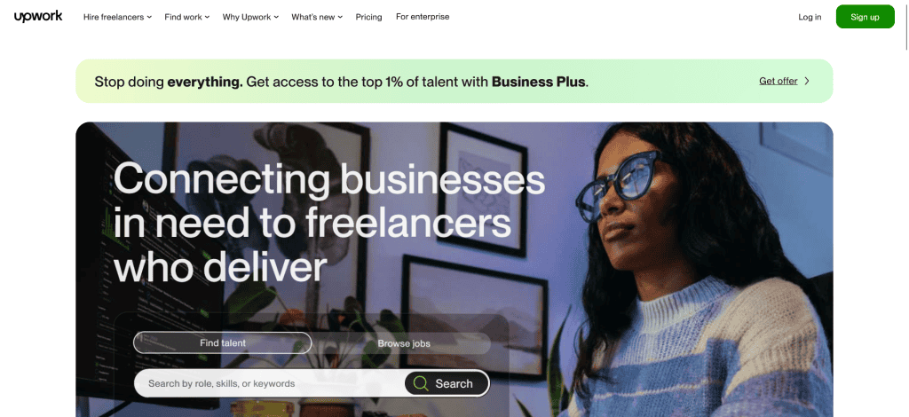 - Best for all-in-one hiring: Upwork– Businesses needing flexible contracts, escrow protection, and a wide talent pool.