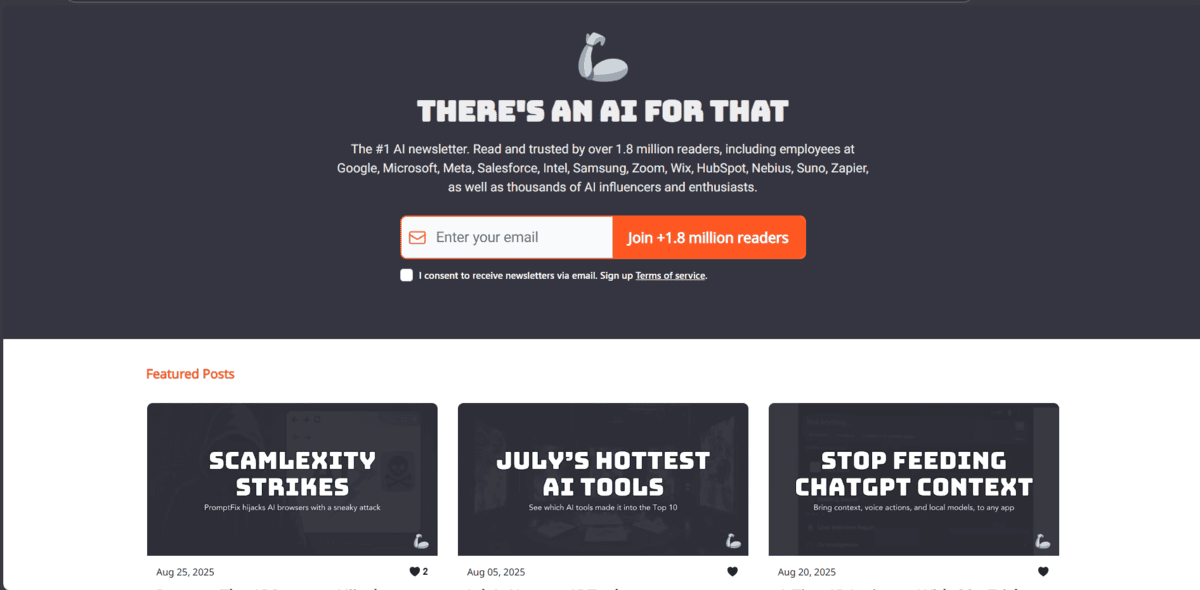 With 1.8 million subscribers, it’s one of the largest AI newsletters out there. They offer well-researched daily updates to keep you informed about useful AI tools as they launch.