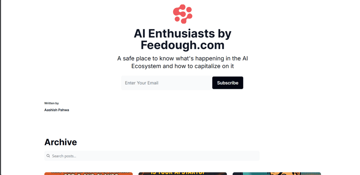 If you’re looking to stay informed about what’s going on in the AI space and get ideas for what you can do, AI Enthusiasts by Feedough is worth checking out.