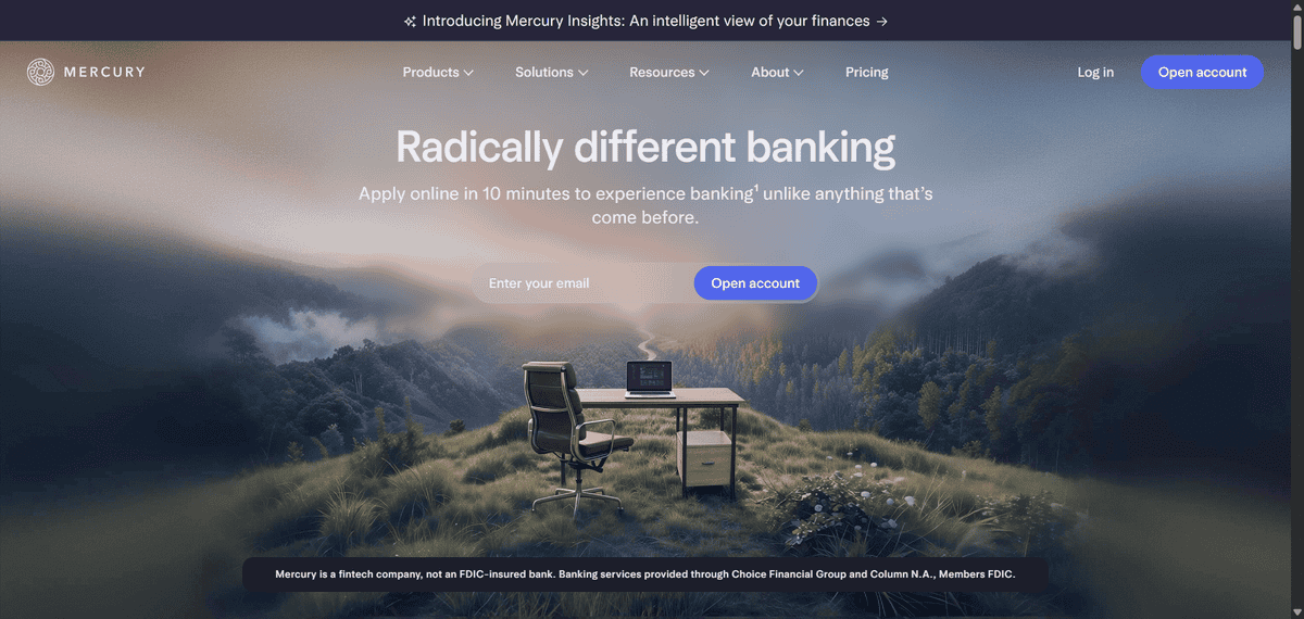 Just a heads up: Mercury is not an FDIC-insured bank directly, which is worth noting when managing large cash balances. Customer support is entirely digital with no phone line or physical branches. The credit card is only available to existing Mercury account holders.
