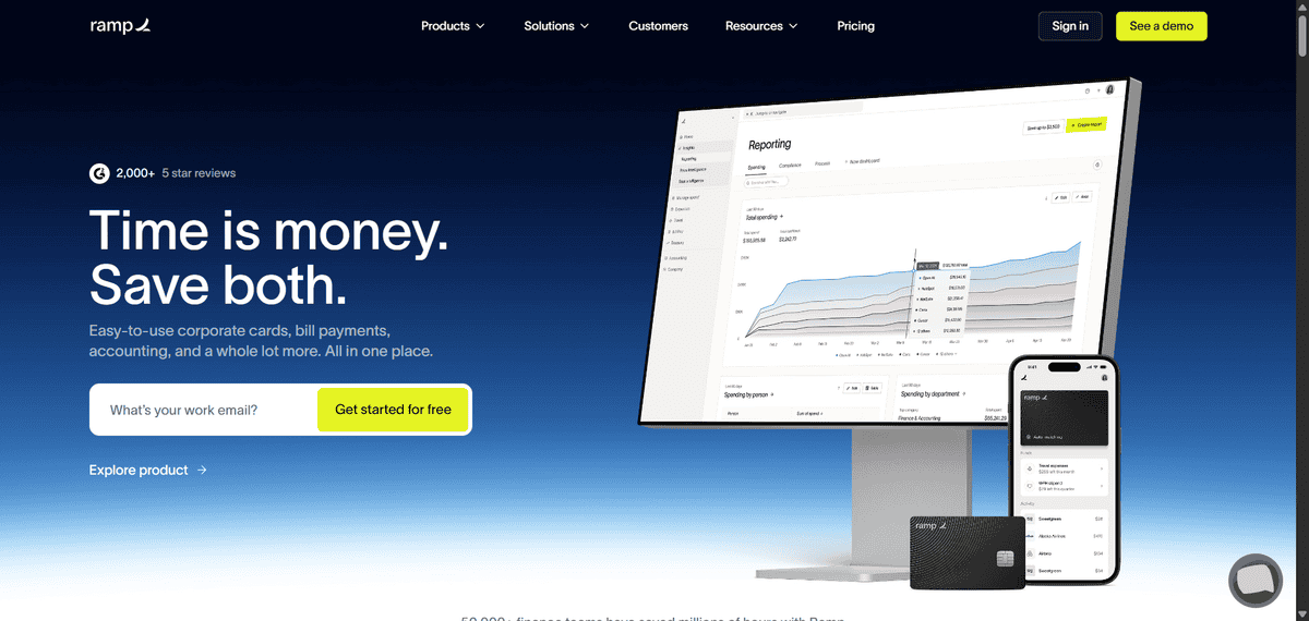 Ramp is a spend management platform that combines corporate cards, expense tracking, bill payments, and accounting automation. It does not require a personal guarantee to apply. The core platform is free to use, which makes it accessible for early-stage companies.