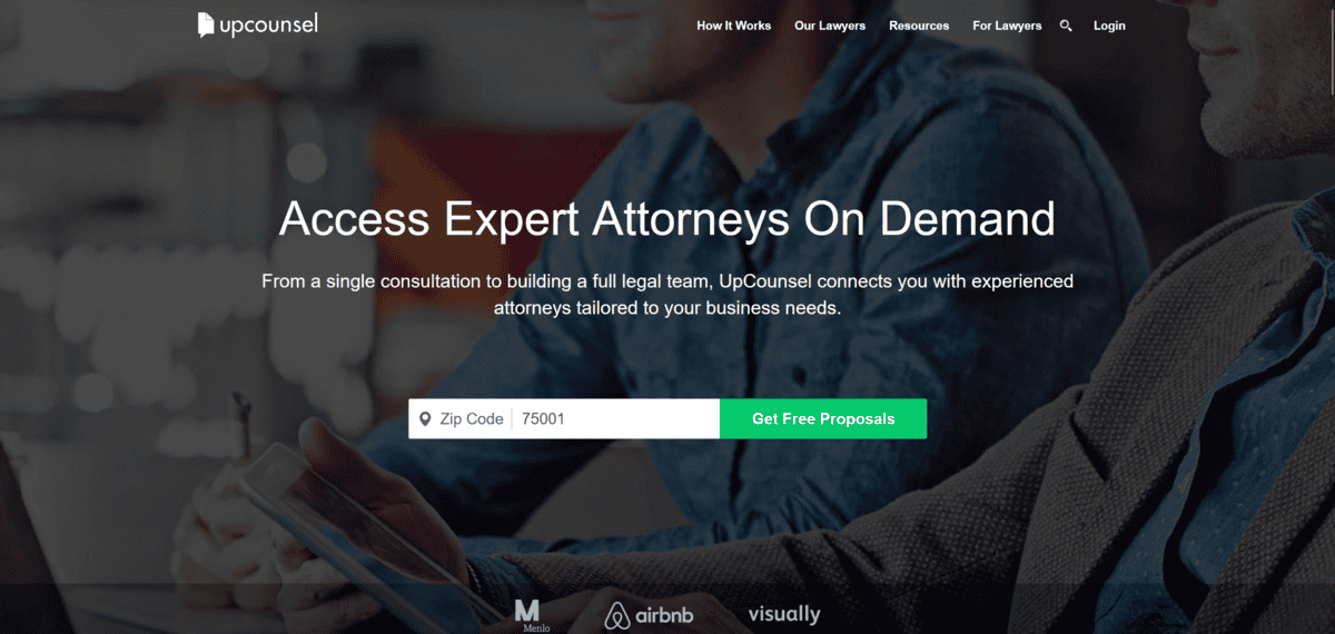 Best for outsourcing legal services: UpCounsel, “A platform connecting you with experienced lawyers for on-demand legal support across various specialities.”