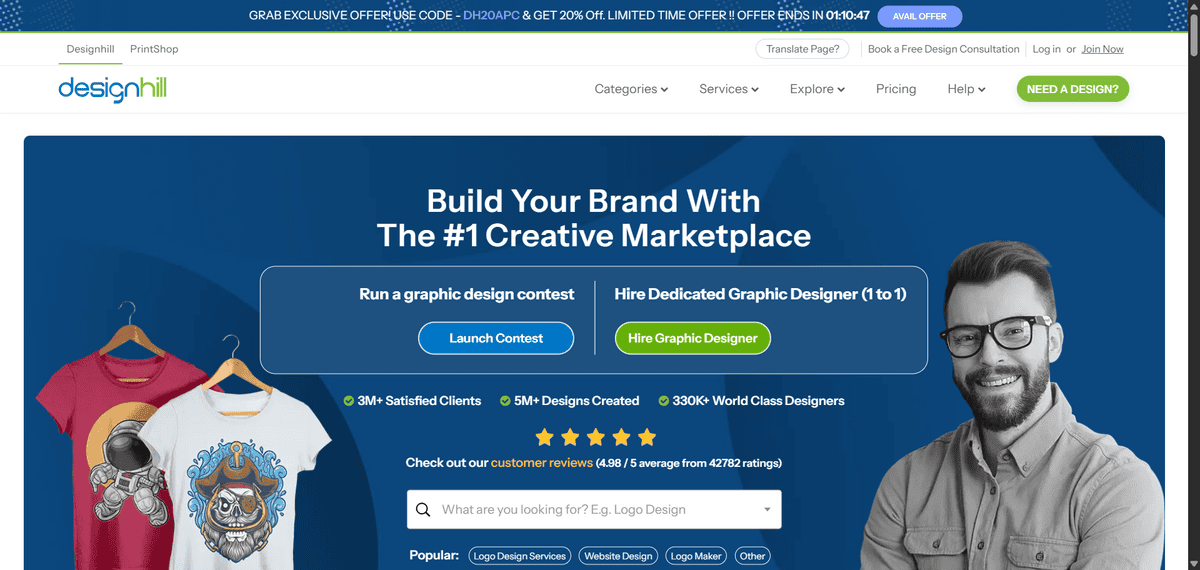 Designhill works best for startups and small businesses that need flexibility in their design process. If you’re on a tight budget but want the option to upgrade to professional help later, this platform gives you that pathway. It’s less ideal for large corporations needing complex brand systems or businesses that already know they want exclusively human-designed work from the start.