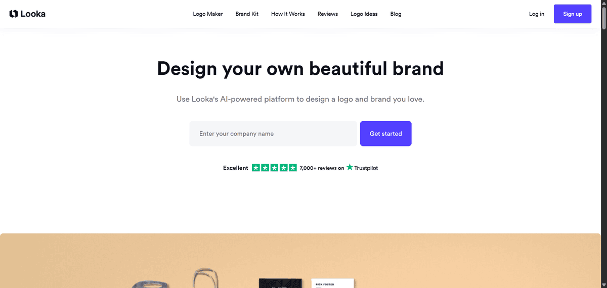 If you want a professional logo and complete brand identity without hiring a designer, Looka’s AI-powered platform can get you there in minutes. This tool uses artificial intelligence to generate logos and then builds out your entire brand kit around them.