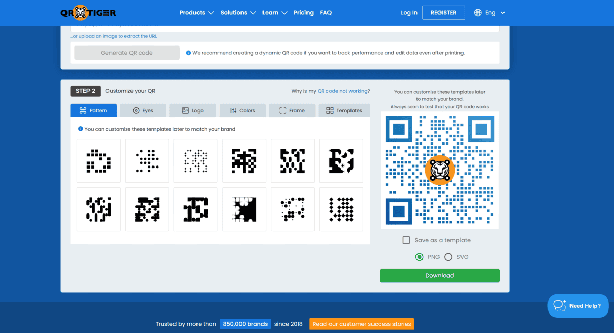 If you want QR codes that actually look like your brand instead of basic black-and-white squares, QR Tiger is a solid pick. It lets you add your own logo right inside the QR code, play with shapes, colors, patterns, and frames, and basically design it to match your brand identity. Plus, if you change your campaign later, its dynamic QR codes let you update the destination without reprinting anything.