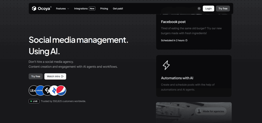 - For AI-Powered Content Creation: Ocoya, “All-in-one AI platform with automated caption writing, drag-and-drop design editor, ecommerce integration, and native ad management capabilities.”