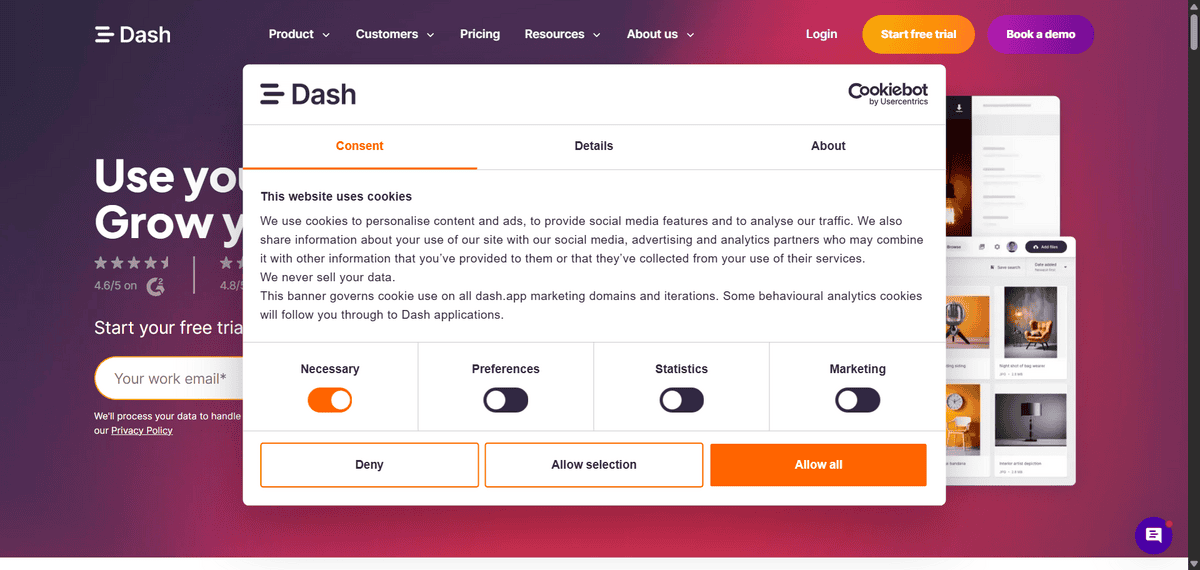 While Dash.app is great for growing e-commerce brands, there are some things to consider. The pricing starts at $109 per month, which might be steep for very early-stage startups just getting off the ground. You’ll also find storage limits on the lower-tier plans, though you can purchase additional storage as needed. Some users mention that while the system is easy to use, the folder structures aren’t as flexible as they’d like for complex organisational needs.