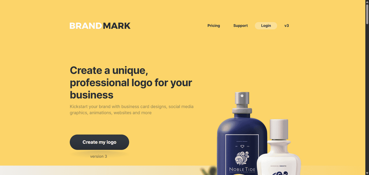 Brandmark is an AI-powered logo generator that creates complete brand identities, not just logos. You get colour palettes, visual assets, and everything you need for consistent branding.