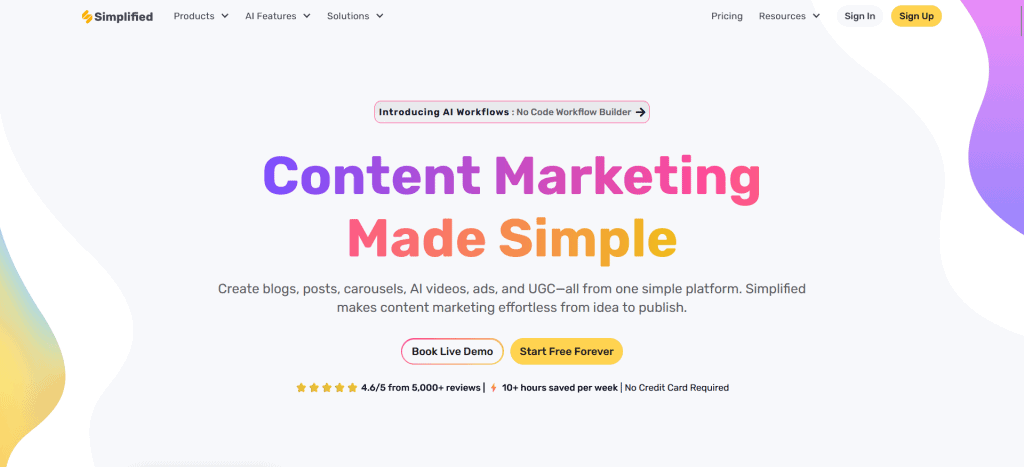 - All-In-One Creative Suite: Simplified – Create AI-written content, social media posts, graphic designs, and videos in one unified platform with scheduling capabilities.