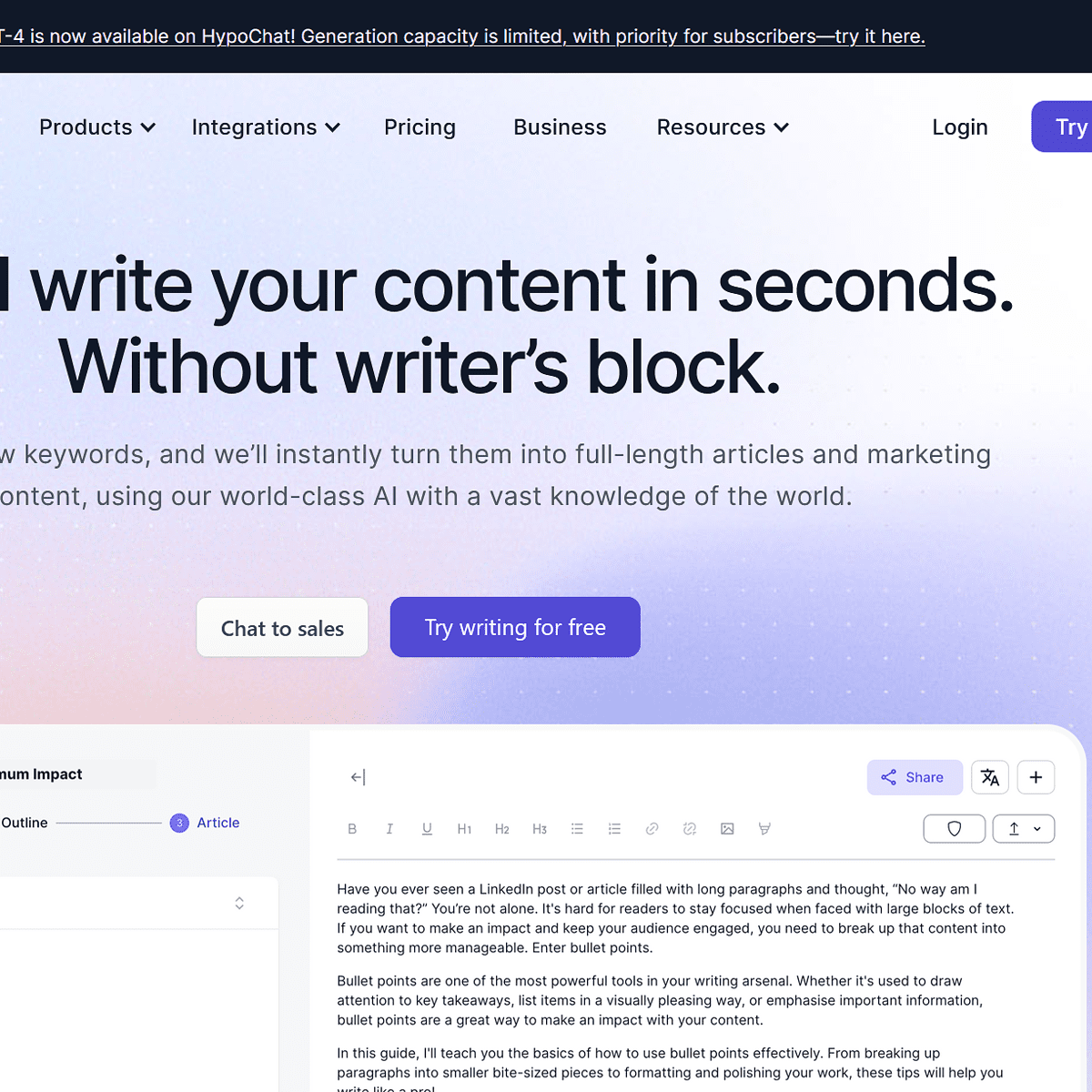 Best For | Well-researched blog articles with citations |