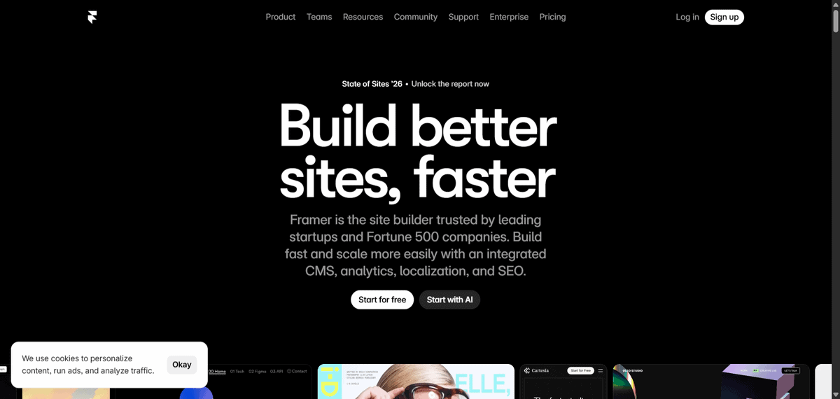 If you need a professional website for your MVP but don’t want to spend weeks designing and coding, Framer helps you build it with AI. You describe what you want in plain English, and the AI generates a complete, responsive website layout. Then you can tweak everything with a visual editor that feels like using design software.