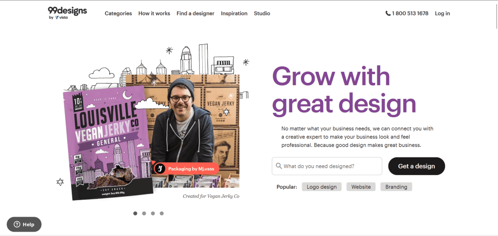 - Dedicated Marketplace for Designers: 99Designs, “A leading online platform that connects people with talented designers worldwide and offers various UI/ UX design services to suit their budget and project needs.”