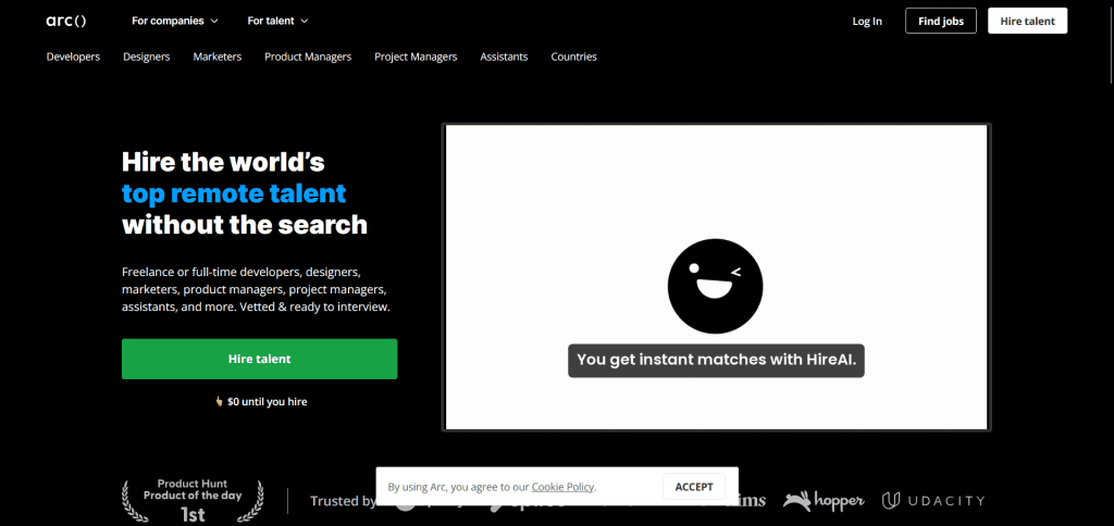 - Its rigorous screening process for app developers saves you time on interviews by selecting the most talented candidates.