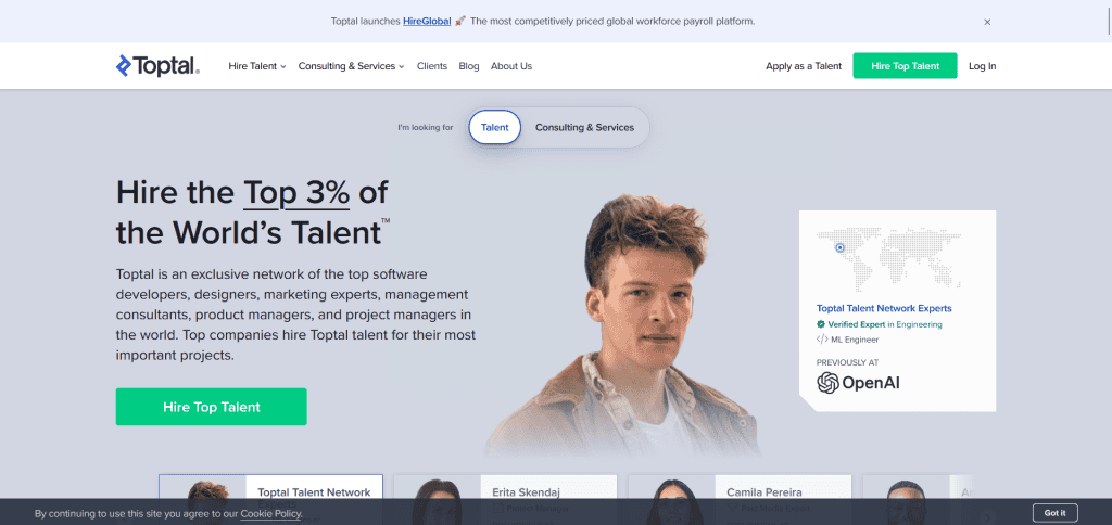 If you’re looking for access to the best app development talent globally, Toptal is the perfect platform for you. It provides access to the top 3% of global talent for app development services.