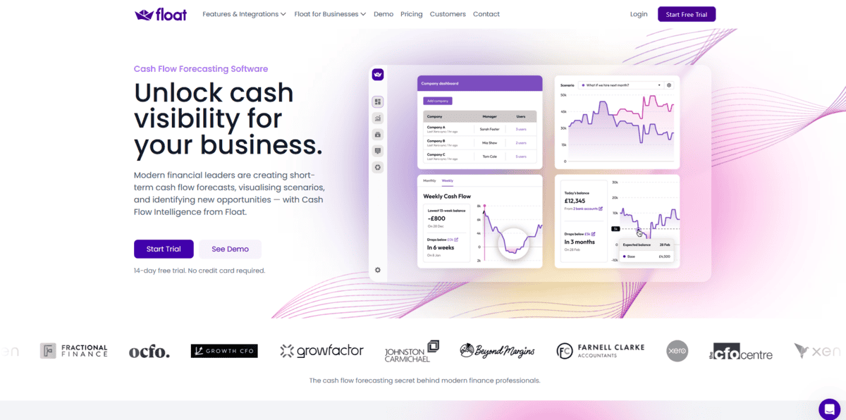 - Best for cash flow forecasting: Float, “Visualises cash inflows and outflows with scenario planning and real-time updates to help you identify shortfalls or surpluses in advance.”