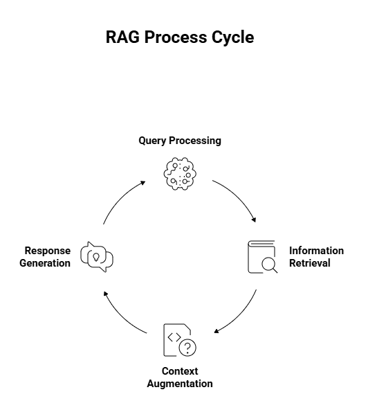 When you ask a question, the RAG system doesn’t immediately start generating an answer. It first retrieves the most relevant documents or data chunks from your knowledge base. Only after gathering this context does the AI model create its response, using the retrieved information as a reference.